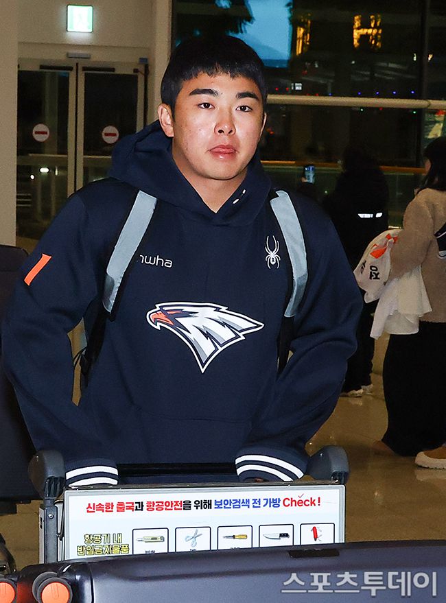 한화 이글스 문현빈이 2026 시즌 준비 스프링캠프를 위해 23일 인천국제공항에서 출국을 준비하고 있다. 2026.01.23. [스포츠투데이 팽현준 기자 sports@stoo.com]
