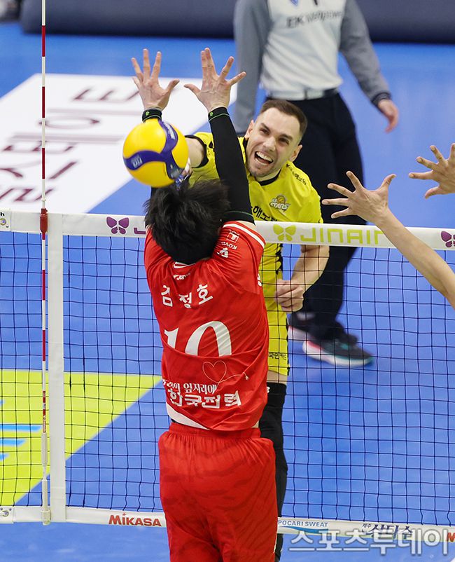 2025-2026 진에어 V-리그 남자부 한국전력-KB손해보험 경기가 18일 경기도 수원시 수원실내체육관에서 열렸다. KB손해보험 비예나가 스파이크를 때리고 있다. 2026.03.18. [스포츠투데이 권광일 기자 sports@stoo.com]