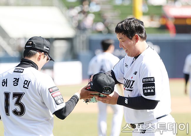 2026 신한은행 SOL Bank KBO리그 시범경기 키움 히어로즈와 KT 위즈의 경기가 19일 수원KT 위즈파크에서 열렸다. KT 허경민, 김현수가 4회초 수비를 나가고 있다. 2026.03.19. [스포츠투데이 권광일 기자 sports@stoo.com]