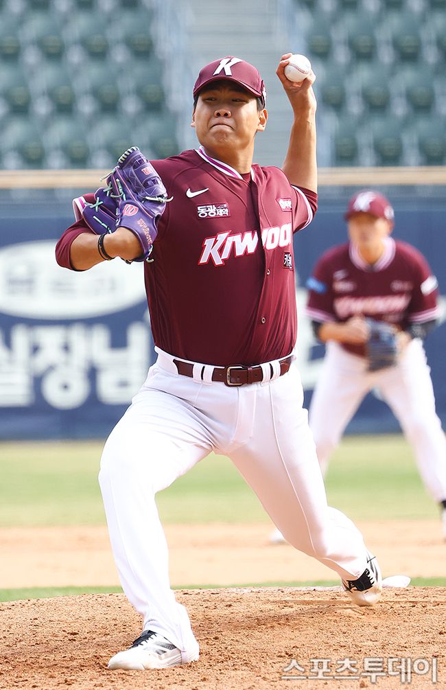 24일 서울 잠실야구장에서 열린 2026 프로야구 키움 히어로즈와 LG 트윈스의 시범경기, 9회말 키움 박정훈이 역투하고 있다. 2026.03.24. [스포츠투데이 팽현준 기자 sports@stoo.com]