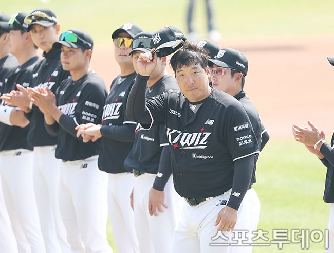 2026 신한 SOL Bank KBO 리그 KT위즈와 LG트윈스의 경기가 28일 서울 잠실야구장에서 열렸다. KT 김현수가 경기에 앞서 팬들에게 인사를 하고 있다. 2026.03.28. [스포츠투데이 권광일 기자 sports@stoo.com]