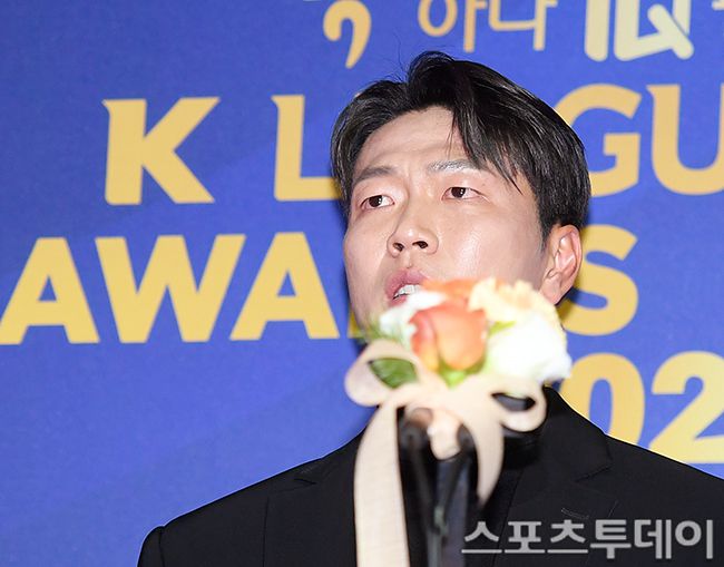 2023 하나원큐 K리그 대상 시상식 행사가 4일 오후 서울 송파구 잠실롯데호텔 월드에서 열렸다. K리그1 MVP로 선정된 울산현대 김영권이 인사말을 전하고 있다. 2023.12.04. [스포츠투데이 권광일 기자 sports@stoo.com]