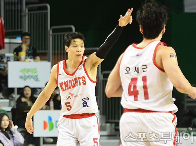 2024-2025 KCC 프로농구 원주DB와 서울 SK의 경기가 16일 강원도 원주시 원주종합체육관에서 열렸다. SK 김선형이 3점 슛을 성공하고 있다. 2025.03.16. [스포츠투데이 권광일 기자 sports@stoo.com]