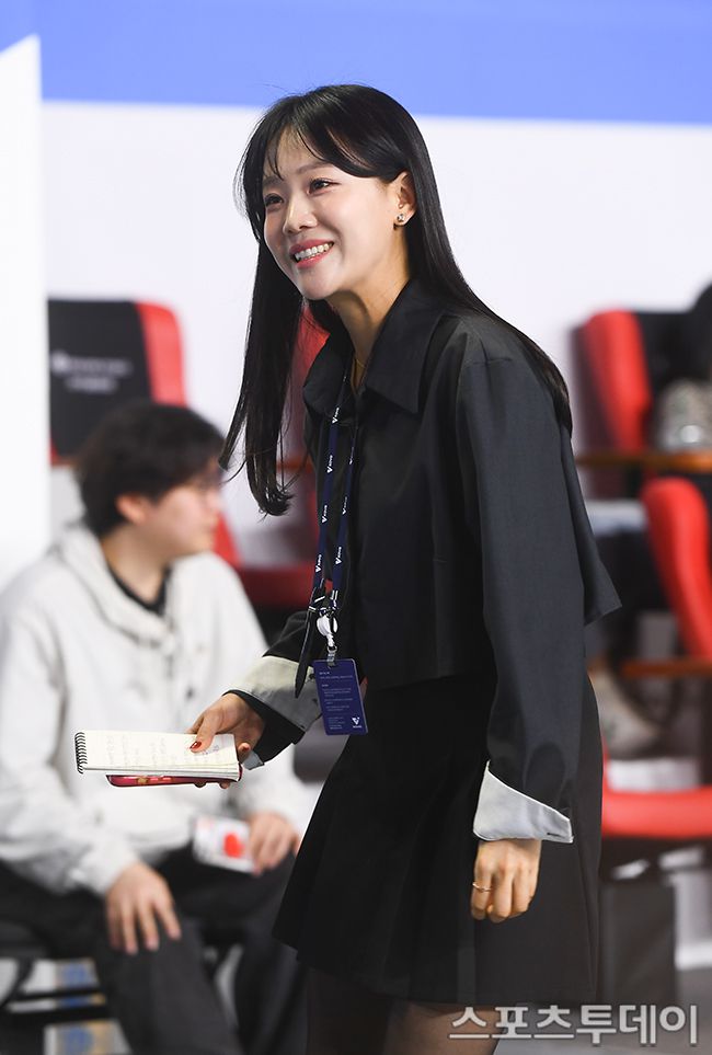 1일 충남 천안유관순체육관에서 열린 2024-2025 V리그 남자부 현대캐피탈과 대한항공의 챔피언결정전 1차전, 오효주 아나운서가 인터뷰를 위해 이동하고 있다. 2025.04.01. [스포츠투데이 팽현준 기자 sports@stoo.com]