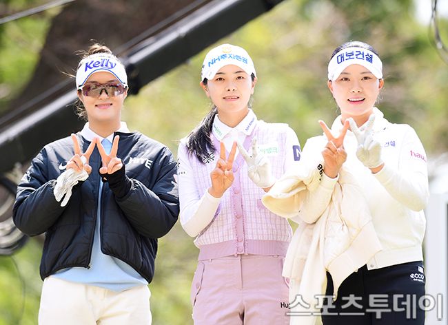 2025 첫 번째 KLPGA 투어 두산건설 We've 챔피언십(총상금 12억 원, 우승상금 2억1600만 원) 2라운드 경기가 4일 부산 금정구 동래베네스트GC (파72 / 6578 야드)에서 열렸다. 김민별, 이가영, 서어진이 1번홀 티샷 후 이동하고 있다. 2025.4.4. [스포츠투데이 권광일 기자 sports@stoo.com]