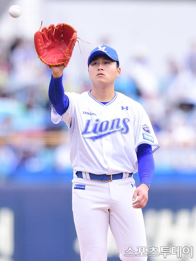 2025 신한은행 SOL Bank KBO리그 한화 이글스와 삼성 라이온즈의 경기가 5일 대구광역시 대구삼성 라이온즈파크에서 열렸다. 삼성 선발투수 이승현이 1회초 등판해 역투하고 있다. 2025.4.5. [스포츠투데이 권광일 기자 sports@stoo.com]