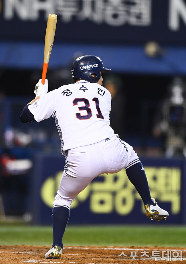 25일 서울 잠실야구장에서 열린 2025 KBO리그 롯데 자이언츠와 두산 베어스의 경기, 두산 정수빈이 타석에 올라있다. 2025.04.25. [스포츠투데이 팽현준 기자 sports@stoo.com]