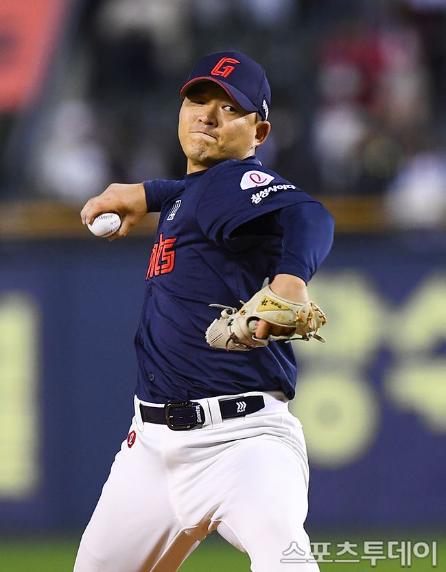 25일 서울 잠실야구장에서 열린 2025 KBO리그 롯데 자이언츠와 두산 베어스의 경기, 9회말 롯데 박시영이 역투하고 있다. 2025.04.25. [스포츠투데이 팽현준 기자 sports@stoo.com]