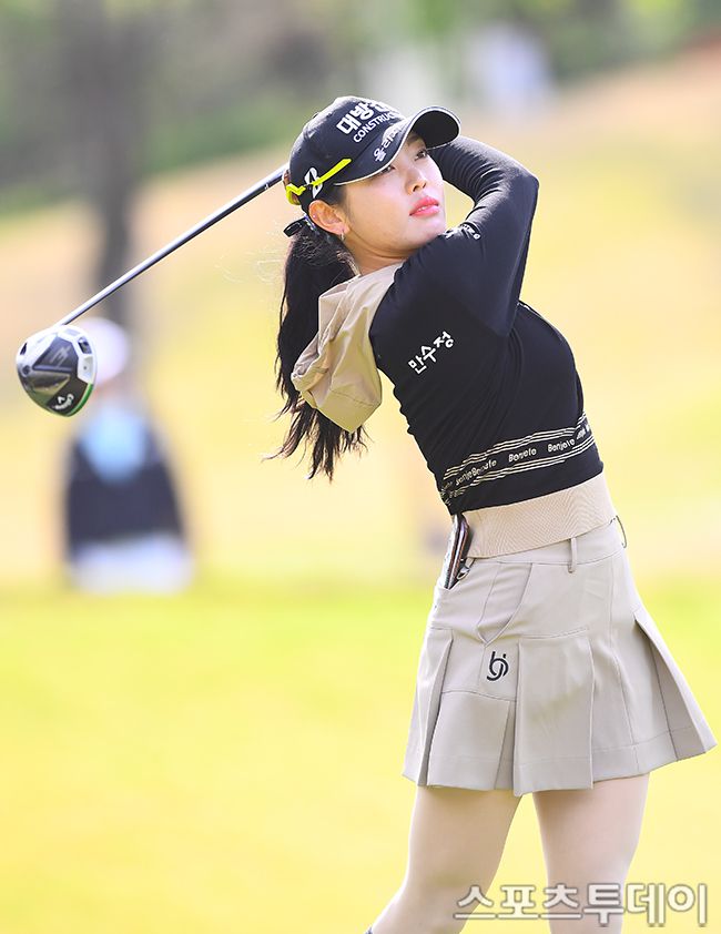 27일 충북 충주 킹스데일GC에서 열린 KLPGA 덕신EPC 챔피언십 파이널라운드, 현세린이 1번홀 티샷을 하고 있다. 2025.04.27. [스포츠투데이 팽현준 기자 sports@stoo.com]