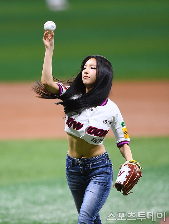 30일 서울 고척스카이돔에서 열린 2025 KBO리그 롯데 자이언츠와 키움 히어로즈의 경기, 그룹 VVS의 멤버 브리트니가 시구하고 있다. 2025.04.30. [스포츠투데이 팽현준 기자 sports@stoo.com]