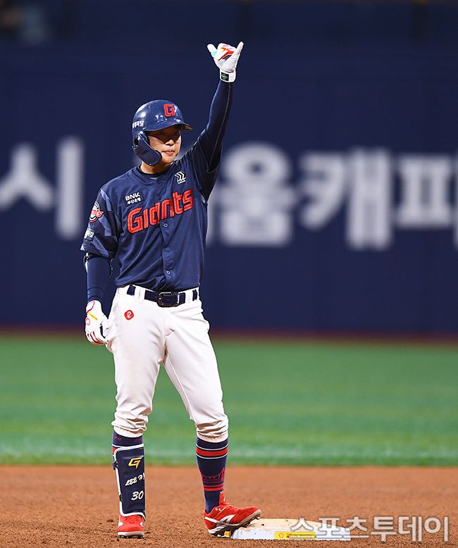 30일 서울 고척스카이돔에서 열린 2025 KBO리그 롯데 자이언츠와 키움 히어로즈의 경기, 4회초 2사 1,3루 롯데 이호준이 1타점 2루타를 때리고 있다. 2025.04.30. [스포츠투데이 팽현준 기자 sports@stoo.com]
