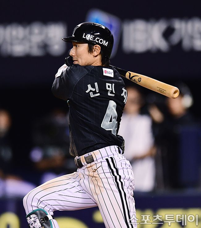 2025 신한은행 SOL Bank KBO리그 NC 다이노스와 LG 트윈스스의 경기가 18일 서울 잠실야구장에서 열렸다. LG 신민재가 5회말 무사 만루에서 2타점 안타를 치고 있다. 2025.06.18. [스포츠투데이 권광일 기자 sports@stoo.com]