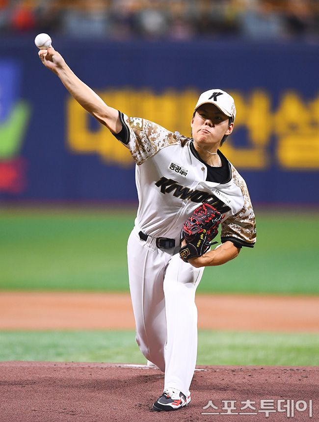 24일 서울 고척스카이돔에서 열린 2025 KBO리그 KIA 타이거즈와 키움 히어로즈의 경기, 1회초 키움 선발투수 김윤하가 역투하고 있다. 2025.06.24. [스포츠투데이 팽현준 기자 sports@stoo.com]