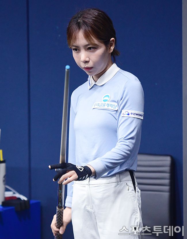 2025-2026 시즌 LPBA 2차 투어 '하나카드 LPBA 챔피언십' 16강전 경기가 3일 경기 고양시 킨텍스 PBA스타디움에서 열렸다. 김민영이 16강전 경기에서 라인을 확인하고 있다. 2025.07.03. [스포츠투데이 권광일 기자 sports@stoo.com]