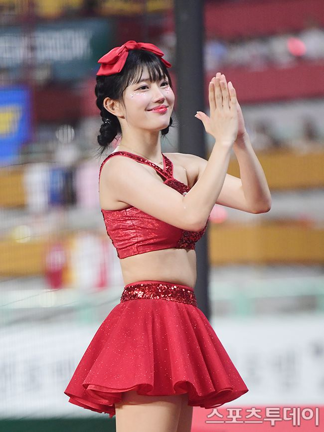 2025 신한은행 SOL Bank KBO리그 KT 위즈와 SSG 랜더스의 경기가 8일 인천 SSG랜더스필드에서 열렸다. 치어리더 조다정이 신나는 응원을 선보이고 있다. 2025.07.08. [스포츠투데이 권광일 기자 sports@stoo.com]