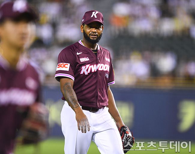 10일 서울 잠실야구장에서 열린 2025 KBO리그 키움 히어로즈와 LG 트윈스의 경기, 키움 선발투수 알칸타라가 6회 수비를 끝내고 있다. 2025.07.10. [스포츠투데이 팽현준 기자 sports@stoo.com]