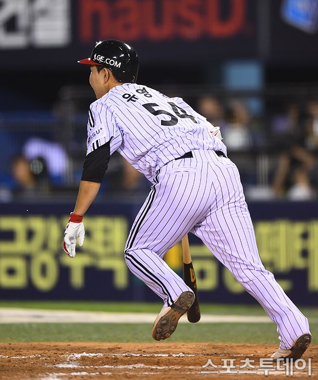 10일 서울 잠실야구장에서 열린 2025 KBO리그 키움 히어로즈와 LG 트윈스의 경기, 8회말 2사 LG 투수 유영찬이 타석에 올라 타격하고 있다. 우익수 플라이아웃. 2025.07.10. [스포츠투데이 팽현준 기자 sports@stoo.com]