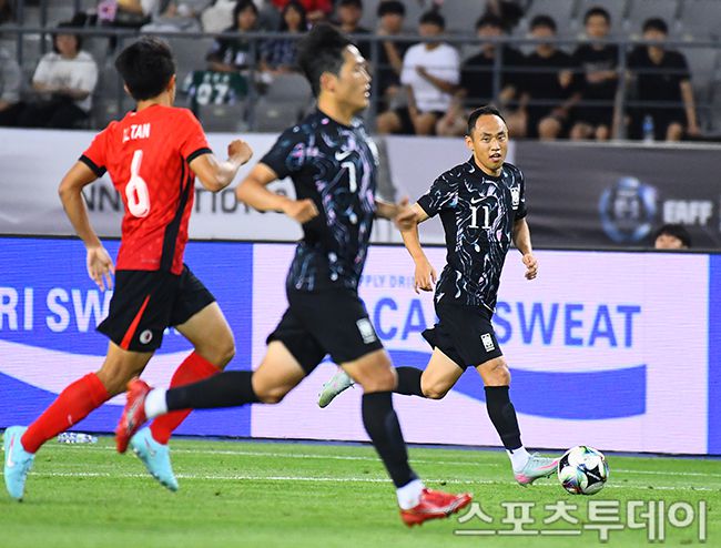 11일 용인미르스타디움에서 열린 2025 EAFF E-1 챔피언십(동아시안컵) 대한민국과 홍콩의 경기, 후반 한국 문선민이 공격하고 있다. 2025.07.11. [스포츠투데이 팽현준 기자 sports@stoo.com]