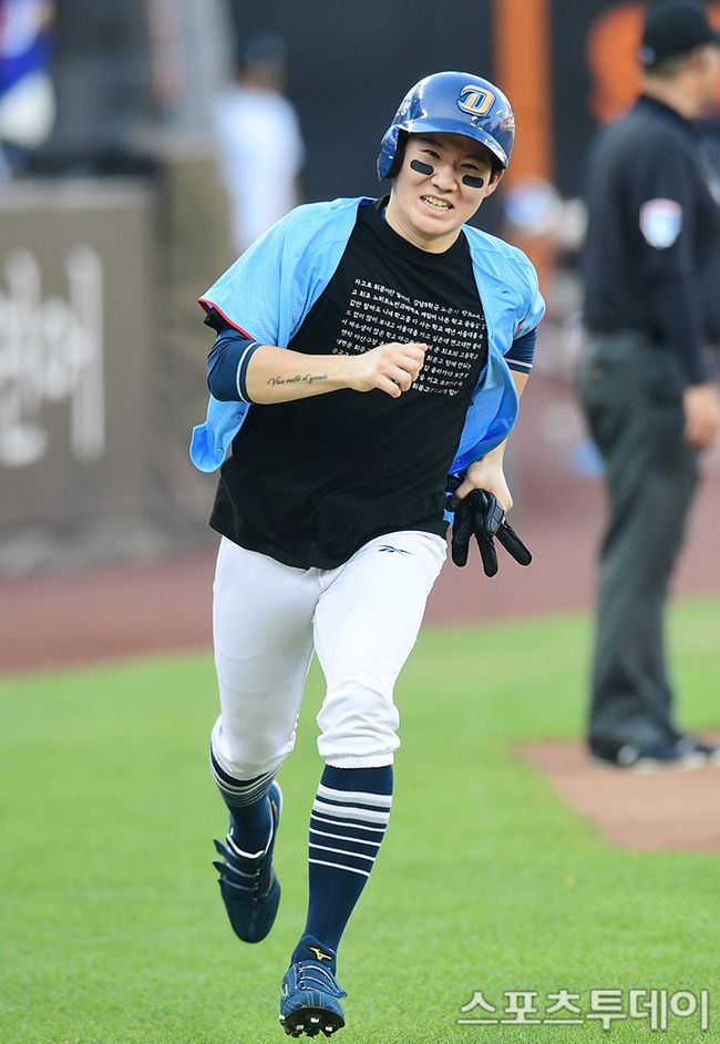 2025 신한은행 SOL Bank KBO 올스타 드림팀과 나눔팀의 경기가 12일 대전 한화생명볼파크에서 열렸다. 나눔팀 박민우가 1회말 채은성의 안타에 홈으로 들어오고 있다. 2025.07.12. [스포츠투데이 권광일 기자 sports@stoo.com]
