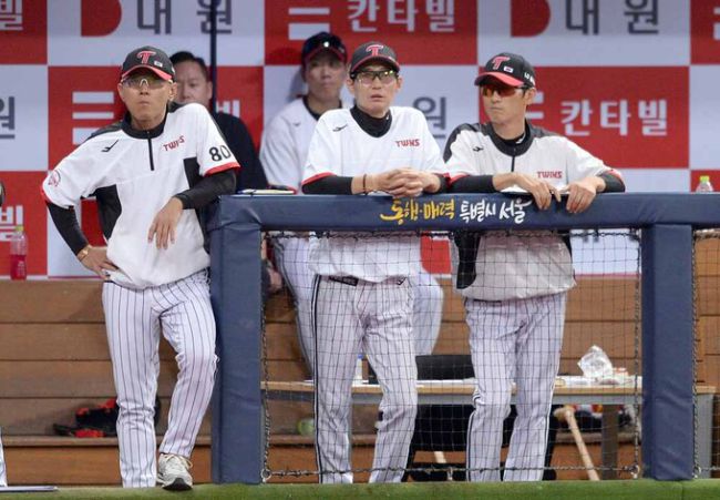 프로야구 LG 염경엽 감독(가운데)이 8일 고척스카이돔구장에서 열린 키움과의 경기를 지켜보고 있다. 고척=김두홍 기자 kimdh@sportsworldi.com 김두홍 기자 kimdh@sportsworldi.com ⓒ 스포츠월드
