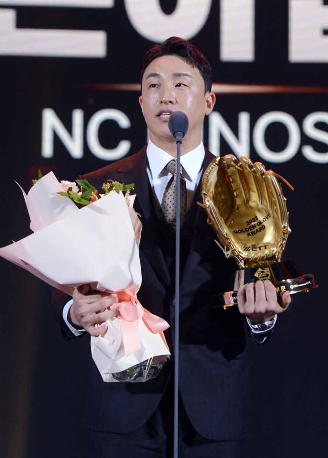 프로야구 NC 손아섭이 11일 삼성동 코엑스 오디토리움에서 열린 '2023신한은행 SOL KBO 골든글러브 시상식' 지명타자부문에서 수상한 뒤 소감을 발표하고 있다. 사진=김두홍 기자 kimdh@sportsworldi.com 김두홍 기자 kimdh@sportsworldi.com ⓒ 스포츠월드
