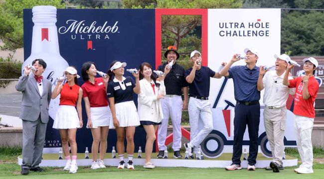 프로골퍼 고진영과 셀럽들이 26일 경기도 파주시 제이퍼블릭 골프장에서 열린 프리미엄 라이트 맥주 미켈롭 울트라 이색 골프 게임 '울트라 홀 챌린지'행사에서 포즈를 취하고 있다. 파주=김두홍 기자 kimdh@sportsworldi.com # 김두홍 기자 kimdh@sportsworldi.com ⓒ 스포츠월드