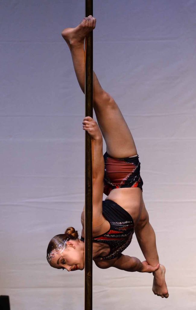 kristina Khovaiba 선수가 12일 경기도 화성시 동탄복합문화센터 반석아트홀에서 열린 2025한국폴스포츠선수권대회 및 2025국가대표선발전에서 폴스포츠 연기를 선보이고 있다. 한국폴스포츠협회(회장 김진희)가 주최하고 국제폴스포츠연맹이 주관하는 2025한국폴스포츠선수권대회 및 2025국가대표선발전은 폴스포츠, 아티스틱폴, 에어리얼후프, 아티스틱후프