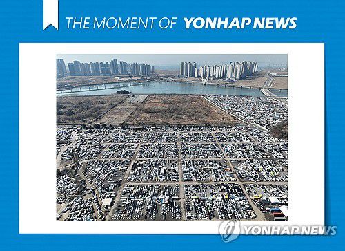 (인천=연합뉴스) 류영석 기자 = 중동 사태 영향으로 중고차 전체 수출 중 약 3분의 1을 차지하는 중동 지역 중고차 수출에도 큰 차질이 빚어지는 가운데 8일 인천시 연수구 옥련동 옛 송도유원지의 중고차 수출단지에 차량들이 빼곡히 주차되어 있다. 2026.3.8 [THE MOMENT OF YONHAPNEWS] ondol@yna.co.kr ▶제보는 카카오톡