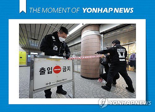 (서울=연합뉴스) 류영석 기자 = 헌법재판소가 윤석열 대통령 탄핵심판 선고일을 발표한 1일 헌재 인근 서울 지하철 3호선 안국역에서 서울교통공사 직원들이 일부 출구에 통제선을 설치하고 있다. 안국역은 선고 당일인 4일 첫 차부터 역을 폐쇄한 뒤 무정차 운행할 예정이다. 2025.4.1 [THE MOMENT OF YONHAPNEWS] ondol@yna.co.