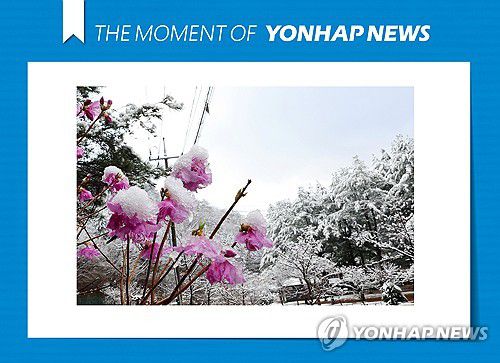 (화천=연합뉴스) 양지웅 기자 = 전국 곳곳에 봄눈 소식이 찾아온 13일 강원 화천군 광덕산 인근에 핀 진달래 위로 눈이 쌓여 있다. 강원지방기상청은 이날 오후까지 영서 내륙과 산지 곳곳에 눈이 내릴 것으로 내다봤다. 2025.4.13 [THE MOMENT OF YONHAPNEWS] yangdoo@yna.co.kr ▶제보는 카카오톡 okjebo ▶연합뉴스