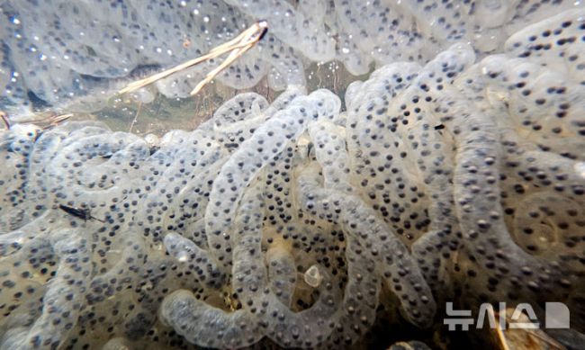 [제주=뉴시스] 우장호 기자 = 절기상 경칩을 하루 앞둔 4일 오전 제주시 애월읍 계곡의 한 물웅덩이에 도롱뇽 알주머니가 부화를 기다리고 있다.제주도롱뇽은 1월 말부터 4월 말까지 작은 개울이나 물웅덩이에 알을 낳으며 투명하고 길쭉한 알주머니에는 약 100여 개의 알이 들어있다. 2026.03.04. woo1223@newsis.com [제주=뉴시스] 우장호