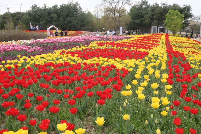 [청주=뉴시스] 청주 문암생태공원 튤립 정원. (사진=청주시 제공) photo@newsis.com *재판매 및 DB 금지 [청주=뉴시스] 임선우 기자 = 충북 청주시 문암생태공원과 무심천이 튤립으로 물들었다. 흥덕구 문암생태공원에는 6000㎡ 규모의 25만본이, 서원구 무심천 롤러스케이트장 일대에는 2000㎡ 규모 10만본이 형형색색의 꽃망울을 터트렸다.
