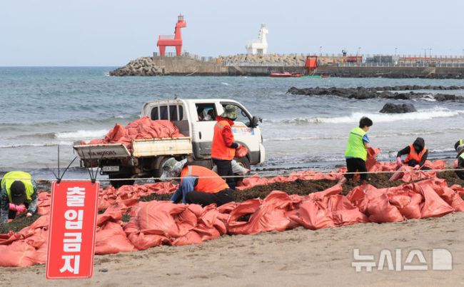 [제주=뉴시스] 우장호 기자 = 강한 바람이 부는 16일 오전 제주시 이호테우해수욕장에서 '제주시 바다환경지킴이' 회원들이 밤사이 해변으로 떠밀려온 미역을 수거하고 있다. 2025.04.16. woo1223@newsis.com [제주=뉴시스] 우장호 기자 = 강한 바람이 부는 16일 오전 제주시 이호테우해수욕장에서 '제주시 바다환경지킴이' 회원들이 밤사이