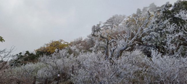 덕유산국립공원 향적봉에 가을 단풍보다 겨울을 알리는 상고대가 먼저 찾아왔다. 지난 27일 오전 08시20분 설천봉은 기온이 영하 2.0도까지 떨어지고, 100%의 습도가 형성되면서 향적봉(1614m), 대피소 등 주능선에 올해 첫 상고대가 피었다. 28일에도 오전 6시40분 기준 영하 5.3도에, 96% 습도가 형성되면서 상고대가 관측됐다. 지난해 11월