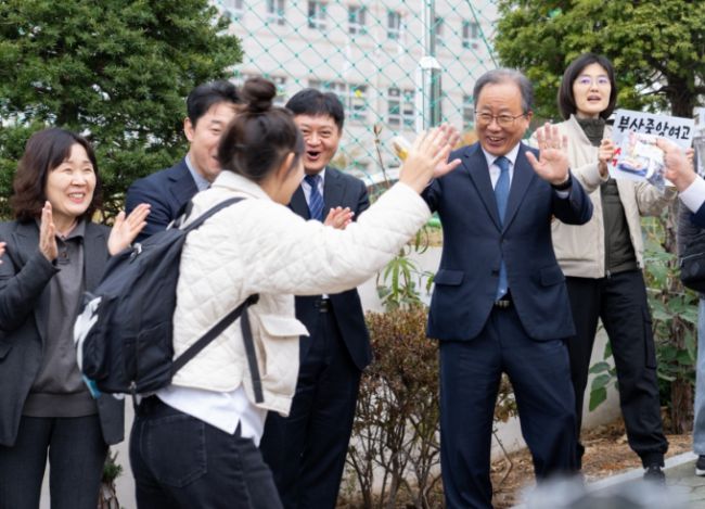 [사진] 김석준 부산교육감 수능 수험생 응원
