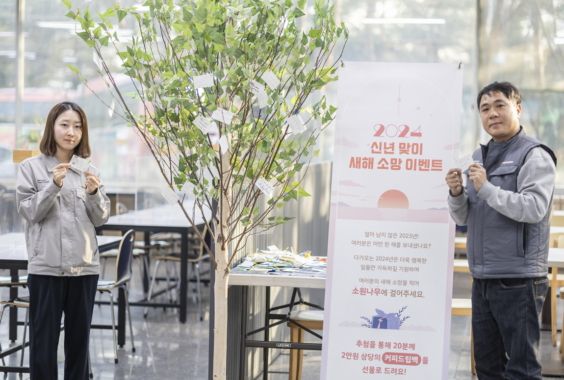한국타이어앤테크놀로지는 생산공장이 있는 대전시 대덕구 목상동 대전공장과 충남 금산군 제원면 금산공장에서 임직원을 대상으로 '2024년 새해 소망 이벤트'를 진행한다고 7일 밝혔다. 임직원들이 새해 다짐과 소망을 메모지에 적어 소망 나무에 올려 이벤트에 참여하는 방식으로 진행한다. 이벤트에 당첨된 임직원에게는 소정의 선물을 지급할 계획이다. /사진제공=한국타