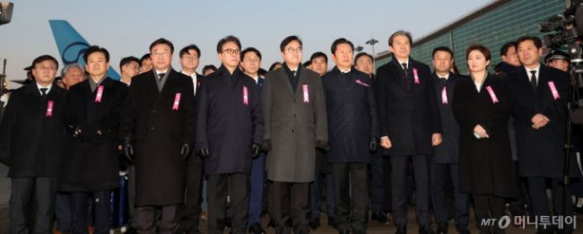 김민석 국무총리, 우원식 국회의장, 정청래 더불어민주당 대표, 조국 조국혁신당 대표 등이 27일 오전 인천국제공항에서 이해찬 민주평화통일자문회의 수석부의장의 시신을 영접하고 있다. 인천국제공항=김창현 기자 chmt@mt.co.kr Copyright ⓒ 머니투데이 & mt.co.kr. 무단 전재 및 재배포, AI학습 이용 금지.