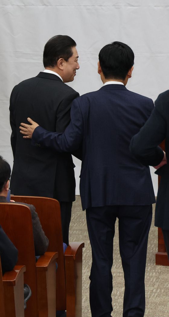 정청래 더불어민주당 대표(오른쪽)가 30일 오후 서울 여의도 국회에서 열린 의원총회에 참석하며 원내대표직에서 사퇴한 김병기 의원과 인사하고 있다. 더불어민주당은 이날 정 대표 주재로 긴급 최고위원회의를 열고 원내대표 보궐선거를 1월 11일 실시하기로 의결했다. [뉴시스] ▶ 중앙일보 / '페이스북' 친구추가 ▶ 넌 뉴스를 찾아봐? 난 뉴스가 찾아와! ⓒ중앙