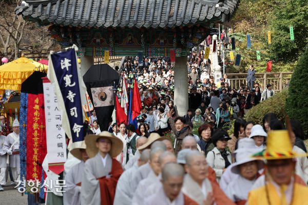 26일 서울 은평구 진관사에서 국가무형문화재 제126호 국행수륙재(國行水陸齋)가 봉행되고 있다. 국행수륙재는 1397년 태조 이성계가 나라의 안녕과 국민의 평안을 기원하기 위해 진관사에 행차해 59칸 규모 장대한 수륙사(水陸社)를 세우면서 시작된 불교 전통의례다. 올해는 '광복 80년, 온 세상을 비추는 감사의 기도로'라는 주제로 진행됐다. 진관사 제공 강