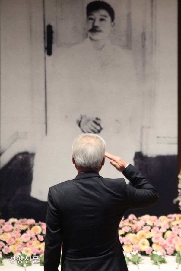 서울 중구 안중근의사기념관에서 26일 열린 안중근 의사 순국 113주기 추모식에서 참가자가 헌화 후 경례하고 있다. 한수빈 기자 ▶ 채용부터 성차별, 27년째 OECD 꼴찌 이유 있었다 ▶ 뉴스 남들보다 깊게 보려면? 점선면을 구독하세요 ©경향신문(www.khan.co.kr), 무단전재 및 재배포 금지