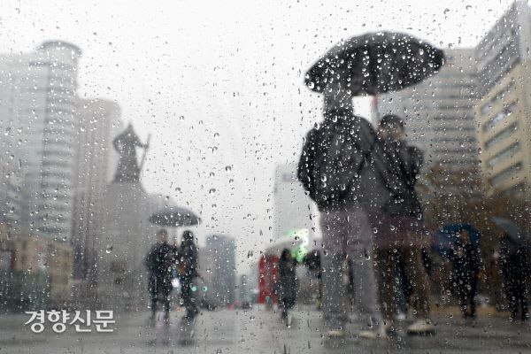 전국 대부분 지역에 비가 내린 27일 서울 종로구 광화문광장에서 우산을 쓴 시민들이 발걸음을 재촉하고 있다. 문재원 기자 ▶ 독립언론 경향신문을 응원하신다면 KHANUP! ▶ 나만의 뉴스레터 만들어 보고 싶다면 지금이 기회! ©경향신문(www.khan.co.kr), 무단전재 및 재배포 금지