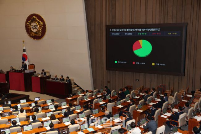 [포토]본회의, '정부지원 의무화' 지역화폐법 가결