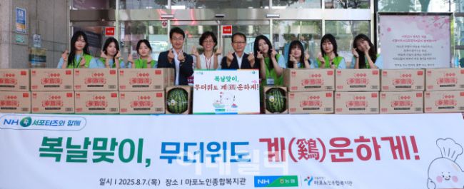 농협 상호금융은 지난 7일 말복을 앞두고 서울시 마포구 마포노인종합복지관(관장 정영숙)을 찾아 삼계탕과 수박 등 보양식 800인분을 후원하며 어르신들의 건강한 여름나기를 응원하였다. “복날맞이, 무더위도 계(鷄)운하게!”라는 이름으로 진행된 이날 행사에는 농협상호금융 대학생 홍보단 NH콕서포터즈 학생들도 참석, 어르신들게 직접 보양식을 전달하며 그 의미를