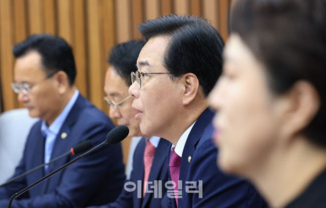 송언석 국민의힘 원내대표가 23일 오전 서울 여의도 국회에서 열린 원내대책회의에서 모두발언을 하고 있다.