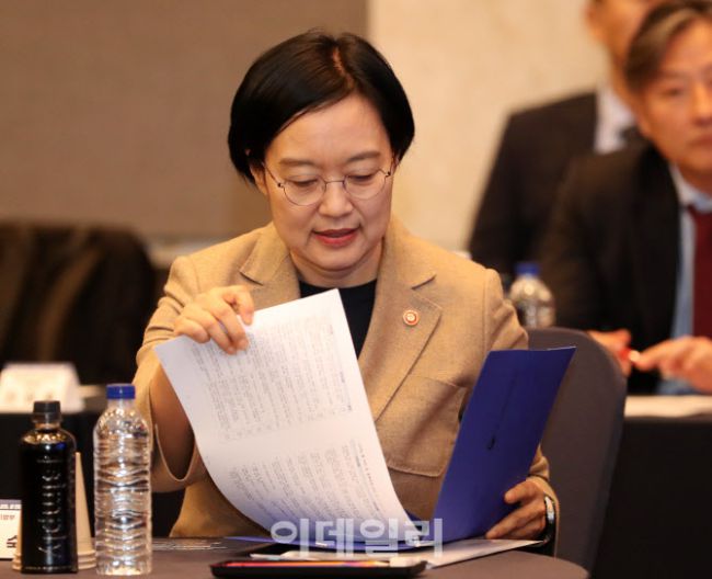 한성숙 중소벤처기업부 장관이 15일 서울 상암동 중소기업DMC타워에서 열린 ‘소상공인 회복 및 안전망 강화’를 위한 열 번째 간담회에 참석하고 있다. 이날 간담회에는 상공인연합회, 전국상인연합회 등 단체장들과 공공기관 및 전문가, 소상공인 등 48명이 참석한 가운데 ‘소상공인 회복 및 재기 지원 방안’을 발표하고 이에 대한 현장 의견을 청취했다. 지원방안은