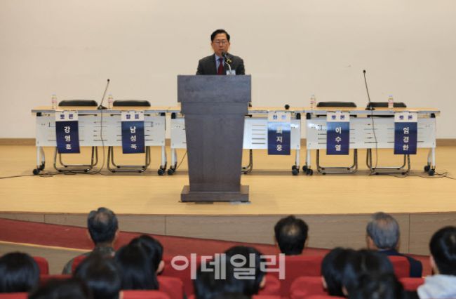 유용원 국민의힘 의원이 13일 서울 여의도 국회에서 열린 ‘변화하는 국제정세에 따른 한미조선해양협력 세미나’에서 개회사를 하고 있다.