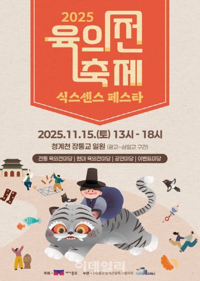 종로구(구청장 정문헌)는 15일 청계천 장통교 일원(관철동 젊음의 거리)에서 「2025년 육의전 축제 ‘식스센스 페스타(Six Sense Festa)’」를 개최한다. 조선시대에는 나라에 필요한 물품을 공급할 권리를 지녔던 상점인 ‘시전’이 있었으며 지전(한지), 어물전(수산물), 포전(삼베), 선전(비단), 면포전(면포), 면주전(명주) 등 6개 시전을 ‘