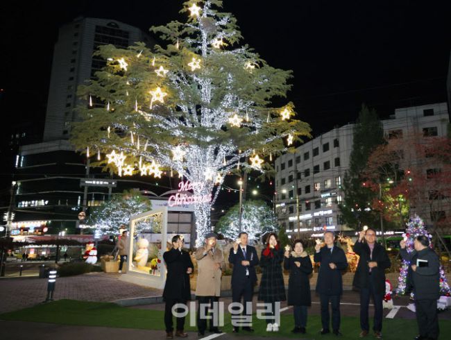장인홍(오른쪽 세번째) 구로구청장이 8일 구로구청 앞 매력정원에서 ‘2025 성탄 트리 점등식을 하고 있다. 이번 행사에는 장인홍 구로구청장을 비롯한 국회의원, 시·구의원, 지역 종교계 인사, 주민 등 100여 명이 참석해 따뜻한 연말 분위기를 나눴다. 점등식에 앞서 구청 5층 강당에서는 구로구 교구협의회가 주관한 성탄 예배가 진행됐다. 예배는 찬송과 기도