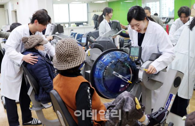 송파구민들이 30일 송파보건소 지소 재활치료실을 이용하고 있다. 재활치료실에서는 통증 치료를 비롯해 운동치료, 작업치료, 방문 재활, 한방진료 등 다양한 재활 서비스를 제공하고 있어 이용자들의 만족도가 높다. 한편, 송파구는 저소득 장애인의 생활 안정을 위해 장애수당을 인상하고, 재활과 자립을 돕는 다양한 복지 정책을 추진 해 왔다. 저소득 장애인에게 지급
