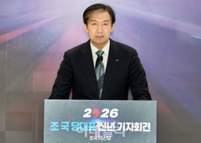조국 조국혁신당 대표가 4일 서울 여의도 국회의원회관에서 2026 신년 기자간담회를 하고 있다.